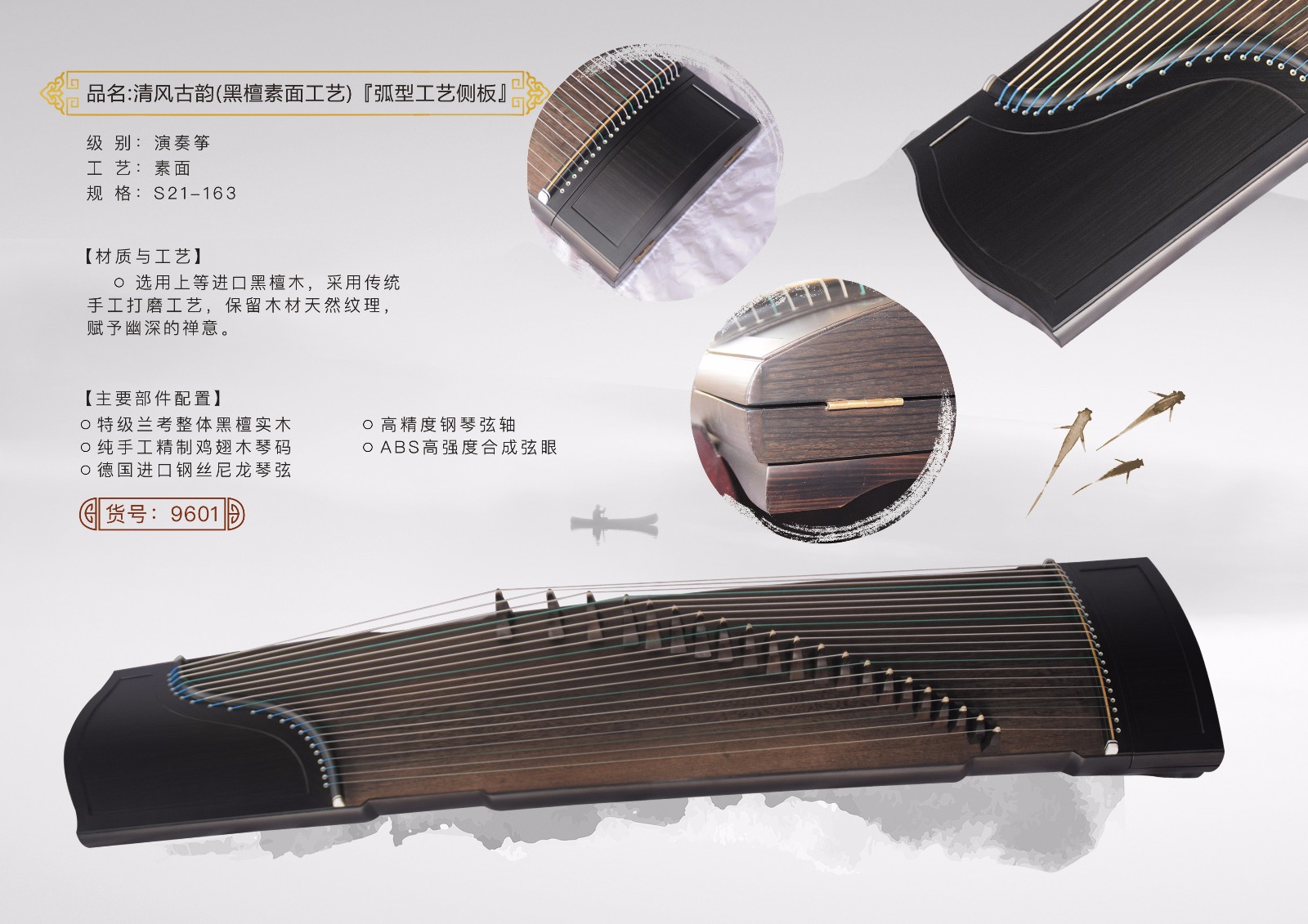 黑檀素面演奏筝 货号:9306
